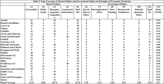 On average, the coverage of market failure in the 23 texts is nearly six times that of government failure.