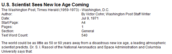 US winter temperatures plummeted from 1950 to 1979. Scientists reacted to this with the global cooling scare, as reported by Science News in 1975