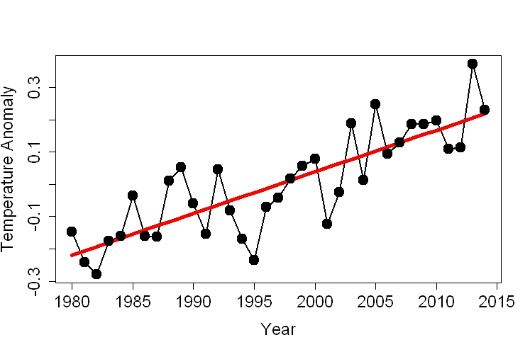 One day, a new data set is released. The rumor runs rampant that it’s annual average global temperature since 1980.