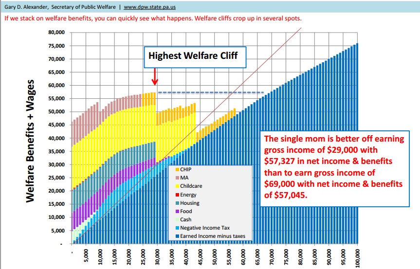 I wrote last year about the way in which welfare programs lead to very high implicit marginal tax rates on low-income people. More specifically, they lose handouts when they earn income. As such, it is not very advantageous for them to climb the economic ladder because hard work is comparatively unrewarding.