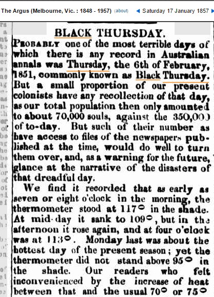 On this date in 1851, Melbourne was 117 degrees at 8am, and one fourth of Victoria burned.