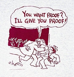 This great Sidney Harris cartoon reminds me of the Big Bang Theoryscene where Sheldon and Leonard end up wrestling during a conference presentation by Leonard. It’s also a handy antidote for anyone with an idealistic picture of scientists and how science is done.