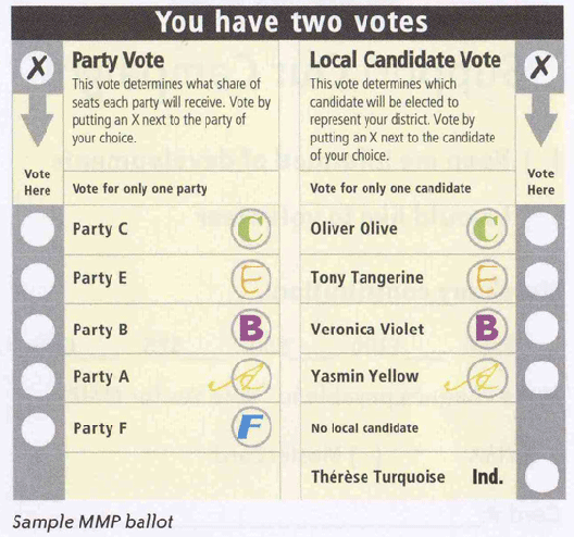 In Parliament of 120, and with mixed member proportional representation (MMP), virtually all New Zealand elections are close and have coalition governments. Through defections, since the introduction of MMP in 1996, two governments have lost their majority on the floor of the house and had to work for every vote or had to form into a new coalition in the middle of the Parliamentary term.
