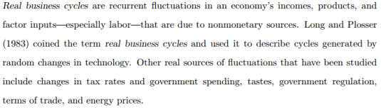 There is growing evidence that a substantial part of business cycle volatility can be explained by real business cycle theory (RBC). RBC claims that a good majority of economic volatility is caused by changes on the supply side: tax and regulatory changes, bad weather in farm economies, spikes in oil prices and technology shocks. Real business cycle models have enjoyed success in replicating most of the observed characteristics of, for example, U.S. aggregate economic activity.