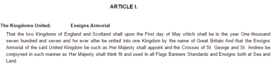 Article I provided for the two kingdoms to be united on 1 May 1707 “and forever after”, as Great Britain. The same Act of Union also secured the protestant succession at all times in the future, the continued existence of the Court of Session to “remain in all time coming within Scotland as it is now constituted by the laws of that Kingdom”, and provided for the establishment of the Church of Scotland to be “effectually and unalterably secured” and