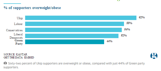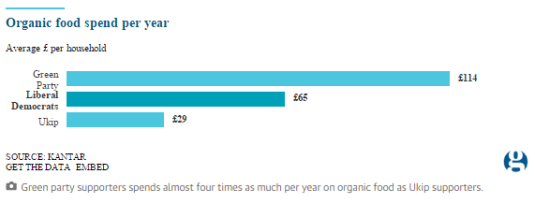A UK Greens voter spends more on organic food than do your average UKIP supporter and they are a lot thinner too.