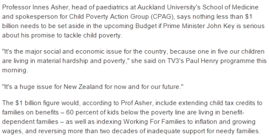 The best available analysis, the most credible analysis, the most independent analysis in New Zealand or anywhere else in the world that having a job and marrying the father of your child is the secret to the leaving poverty is recently by the Living Wage movement in New Zealand.