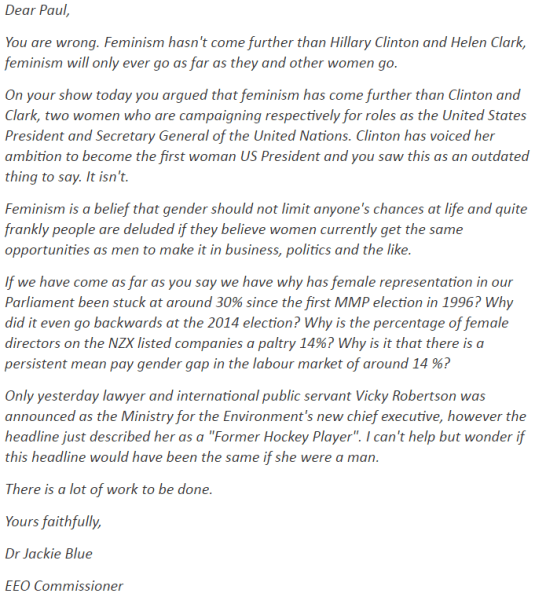 Jackie Blue, despite the resources of the Human Rights Commission, did not Google her own web site for the biography of the Chief Commissioner of the Human Rights Commission.