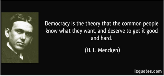 The strength of democracy lies in the ability of small groups of concerned and thoughtful citizens to band together and change things by running for office and winning elections.