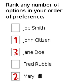 All but one of the Australian federal and state upper houses is elected by proportional representation, often with the option of a group ticket. That is, instead of filling out every box to cast a valid vote, you vote above the line put in a 1 against party you prefer.