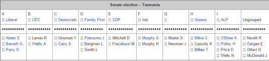 The Tasmanian Legislative Council is the exception to proportional representation in Australian upper houses with 15 single member constituencies. Naturally, 12 of these 15 legislative councillors are independents. That’s a little bit low by historic standards in my home state were normally the political parties have no success in getting members elected to the Tasmanian upper house.
