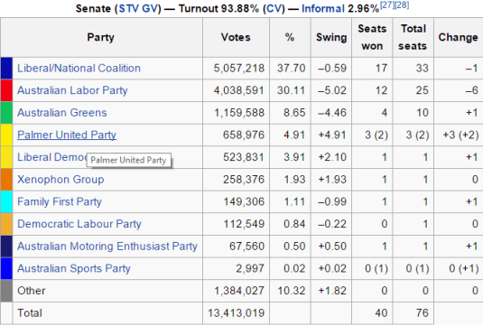 In the 76 strong Federal Senate, what could not be a more mixed bags of independents, minor parties and minor party defectors and renegades control the balance of power.