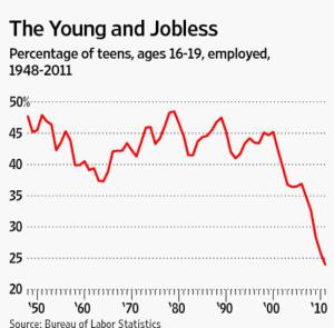 This is a rotten summer for young Americans to find a job. The Department of Labor reported last week that a smaller share of 16-19 year-olds are working than at anytime since records began to be kept in 1948.