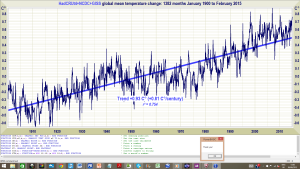 (VM): Since 1900, global mean surface temperature as measured by the three longest data series – GISS, HadCRUT4, NCDC – has risen by approximately 0.9 K, a rate equivalent to 0.8 K century–1.