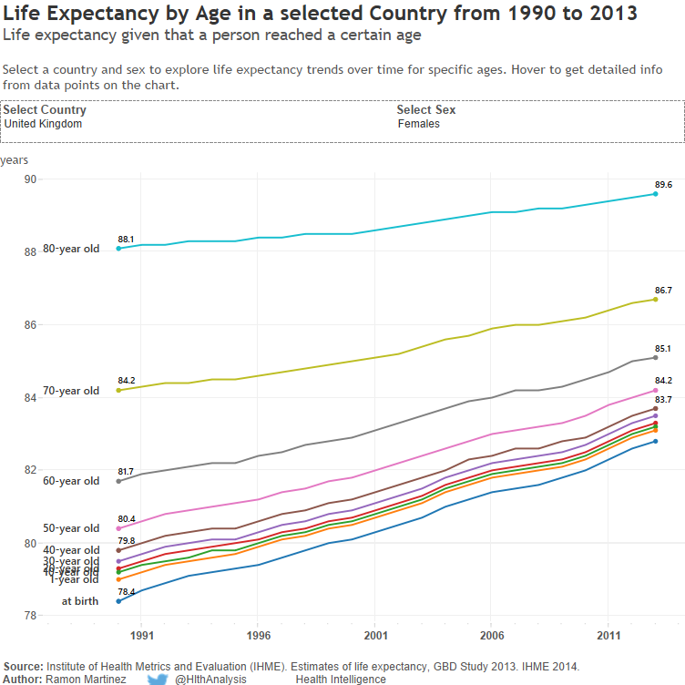 via Life Expectancy by Age in selected Country from 1990 to 2013 | Health Intelligence.