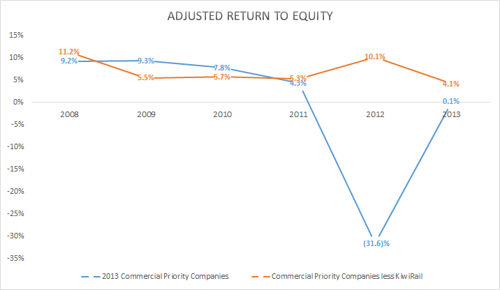 I also included the adjusted rate of return on equity taking out the two dogs in the portfolio: Solid Energy and KiwiRail.
