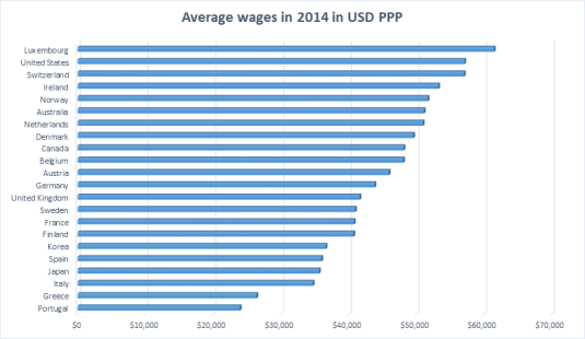 Average wages in 2014 US$PPP, selected OECD member countries