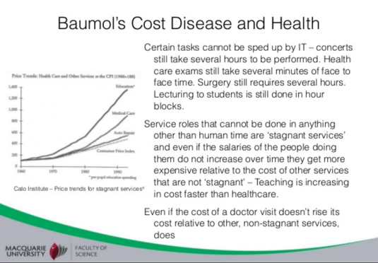 Any extra labour productivity from a living wage at the Wellington City Council is in doubt because low skilled service sectors are notorious for their low potential for productivity gains. They are the bread-and-butter of Baumol’s disease.
