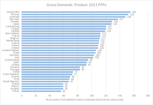 The Scandinavians and Swiss been way up there in terms of purchasing power parity is no surprise but why is Australia up there with the expensive places?