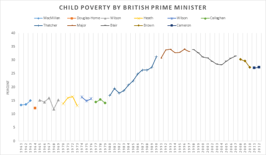 I’m sure that the morally centred Twitter Left will be equally forgiving of the sustained rise in child poverty due to many more workless households shown in the chart below under Thatchernomics. The only sustained fall in child poverty rates in recent British history was under Tony Blair. The British Left and current British Labour Party leadership dismiss him as a continuation of Thatchernomics.