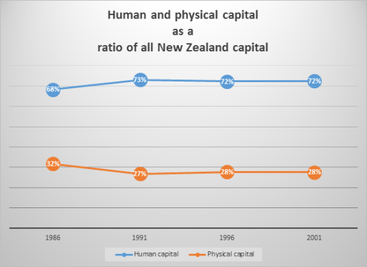 Rashbrooke ignores 70% of the capital, the wealth in any economy. Gary Becker’s estimate that human capital is 70% of all capital in the US economy travels well to New Zealand as shown in the chart below.