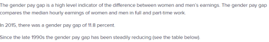 The unadjusted gender pay gap has been in a long-term decline for generations. The unadjusted gender wage gap in 2015 is 11.8% as shown in the above chart and in the second New Zealand Green’s Facebook link above but not first of their Facebook links above where it is claimed to be 14%.