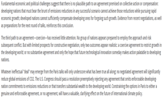 It is time for the environmental movement to face up to the fact that there never will be an international treaty to restrain carbon emissions.