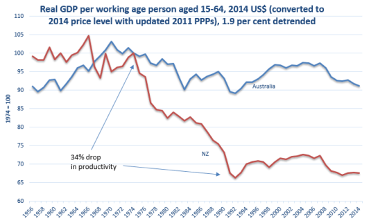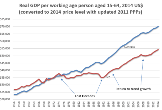 - the lost decades of New Zealand growth between 1974 and 1992;