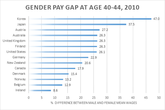 Gender wage gap at age 40-44, selected OECD countries