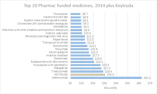 At $30 million per year just to treat stage IV melanoma cancer, Keytruda is number two with a bullet. The second most expensive drug on the Pharmac budget of $800 million would be based on a political decision by an opposition party keen to win office if the Labour Party had its way.
