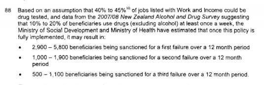 Source: Minister of Social Development Cabinet Paper on Pre-employment Drug Testing Requirements.