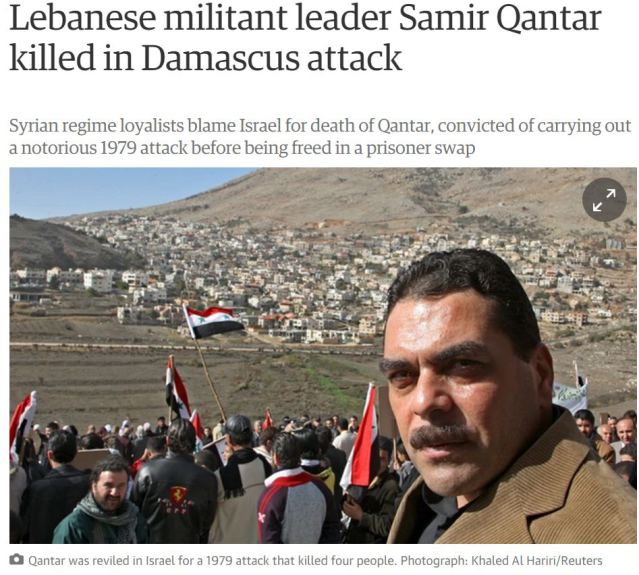 Earlier today, we posted about a wildly inappropriate photo chosen by Guardian editors to illustrate a story about an airstrike which killed Samir Kuntar, the Lebanese-Druze terrorist who brutally murdered several Israelis, including a 4-year-old girl, in Nahariya in 1979.