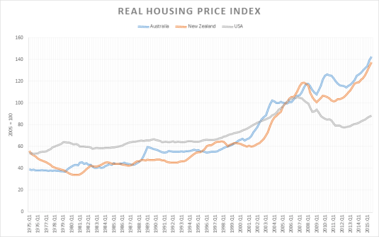 Notice that New Zealand housing prices were pretty flat until the passage of the Resource Management Act in 1993.