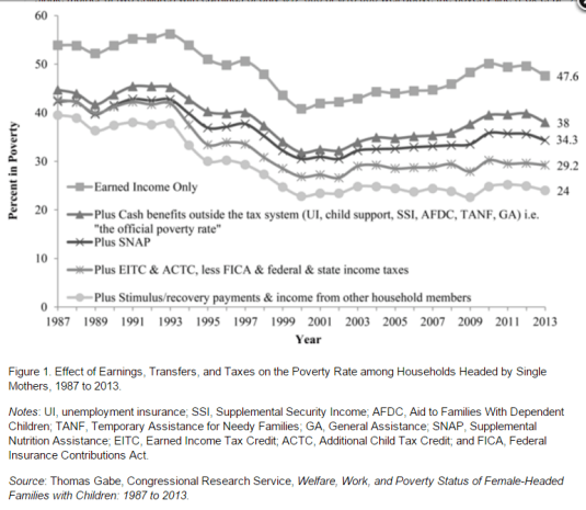 Despite the dire predictions, there has been a permanent reduction in child poverty of 25%, a 35% increase in the employment rates of never married mothers and a 16% increase in the employment rates of single mothers.
