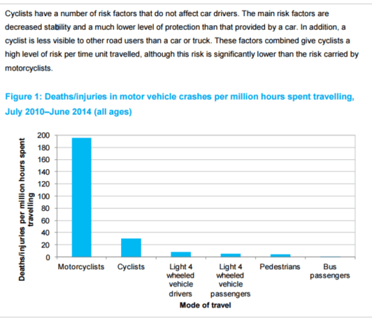 As I have previously argued, all the evidence suggests that riding a bike is dangerous. Both motorcycles and bicycles are way more dangerous than travelling by car.