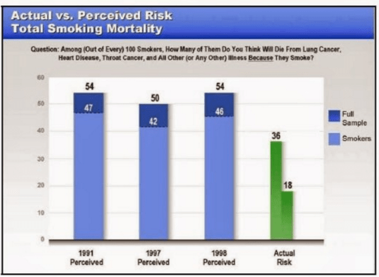 I am sure Morgan will point out that people know that riding a bike or swimming is dangerous. Even those living in a cave also know that drinking sugary drinks and having a smoke is also dangerous. Indeed, the evidence is people overestimate the risks of these socially disapproved activities rather than underestimate them.