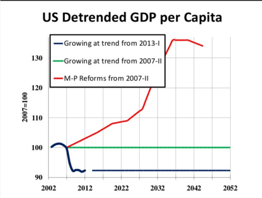 As a contrast against the Bernie Sanders tax-and-spend high-growth plan, the Edward Prescott plan is:
