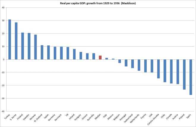 And here is the comparable chart, using the Maddison database of historical estimates, for the years 1929 to 1936