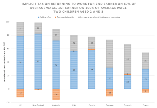 Not a lot of point for a 2nd earner in an ordinary family going back to work in the English-speaking countries once you consider the childcare fees for a 2-year-old and a 3-year-old. These calculations were released today in Paris in the OECD’s Going for Growth 2016.