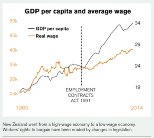As Rosenberg, who is chief economist at the Council of Trade Unions, and the Council of Trade Unions itself pointed out, there were major changes in the New Zealand economy in terms of inequality of incomes and union bargaining power in the late 80s and early 1990s.
