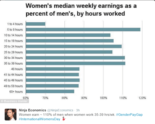 The #genderwagegap by the length of the working week