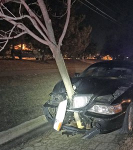 The Roselle (Ill.) police released this picture from a drunk driving arrest this week. The driver failed to stop after hitting a tree. Instead, the car was pulled over about 11:10 p.m. traveling the wrong way with a 15-foot-tree lodged in the front grille of the Lincoln.