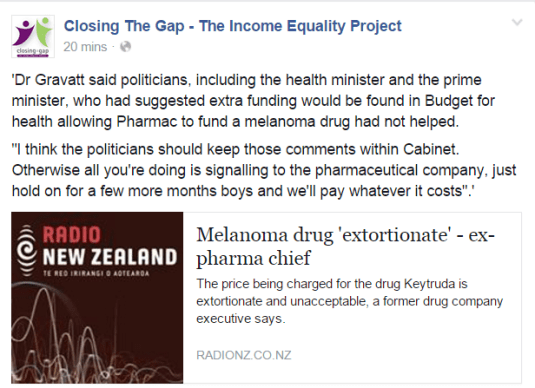 Source: Melanoma drug ‘extortionate’ – ex-pharma chief | Radio New Zealand News.