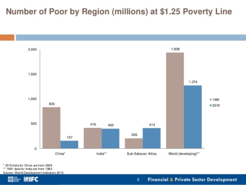 However, since virtually all the decline from 1981 to 2009 is from China, I’d give the credit largely to “state capitalism” and not to any top down multilateral agency development program.