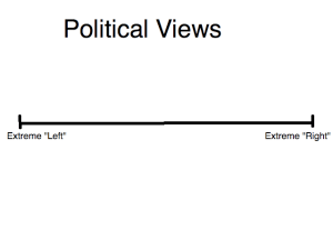 This is because we have a largest-vote-getter, winner-take-all system. It pressures people to divide into two camps. Think of a political spectrum as a line.