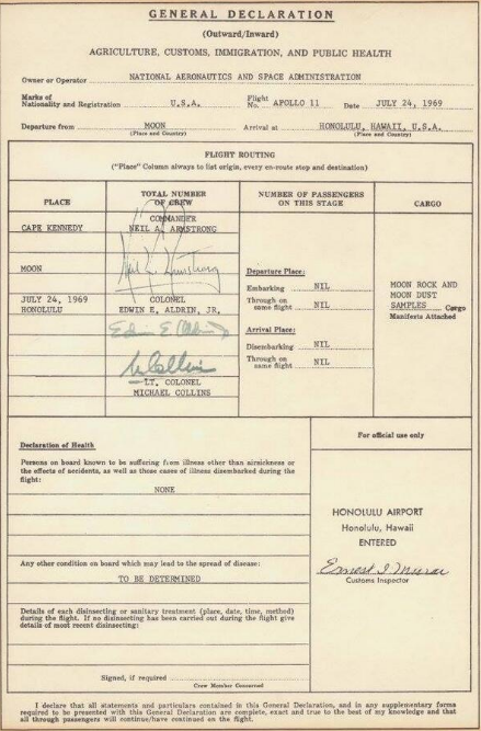 Immigration form for entering earth. c.1969.
