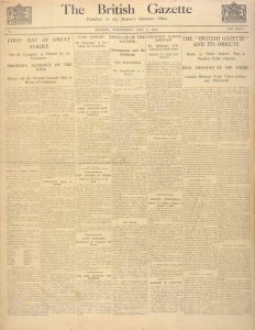 The online book seller AbeBooks recently sold a complete 8-issue run of the British Gazette for £8,030. As Chancellor of the Exchequer in the Stanley Baldwin government, Winston Churchill played a controversial role in the General Strike of 1926 and served as the editor of the British Gazette. The copies sold by AbeBooks are signed by Churchill, Baldwin, and John C.C. Davidson, M.P. During the strike Davidson was the deputy chief civil commissioner and was responsible for the government’s publicity efforts, including “overseeing the activities of Winston Churchill and the British Gazette.” Further information on the sale is are available here.