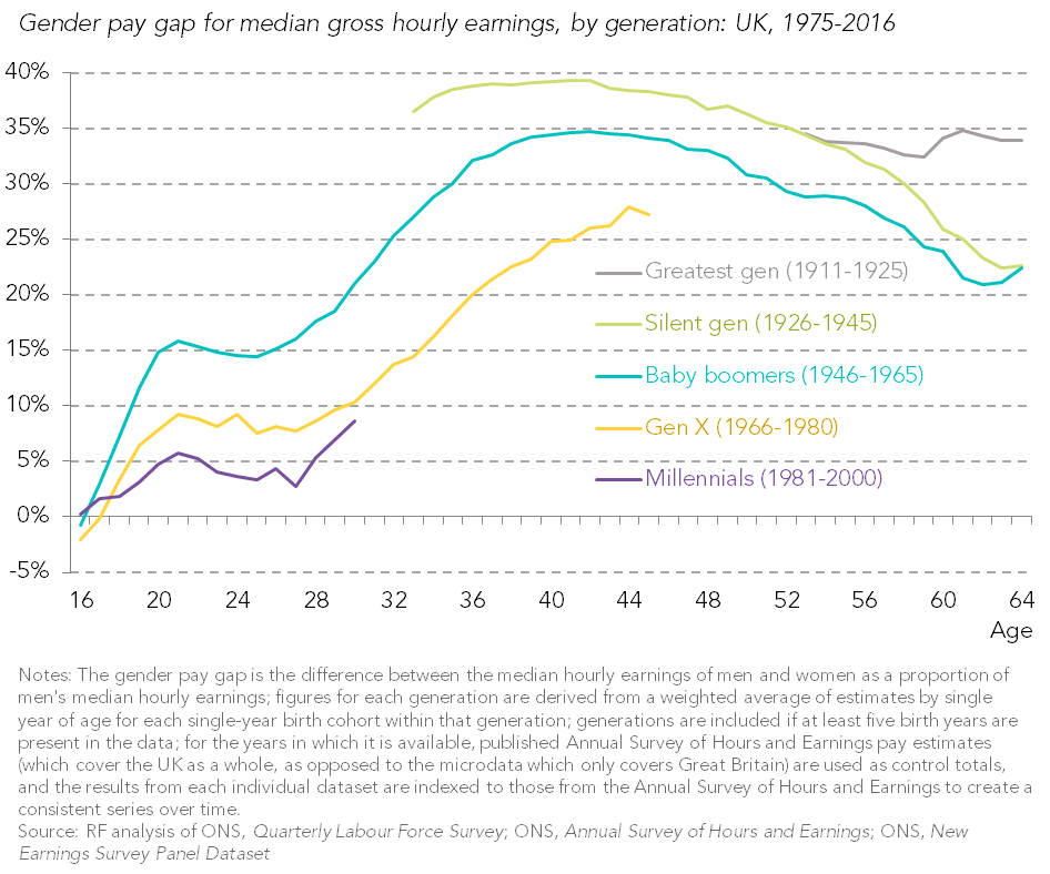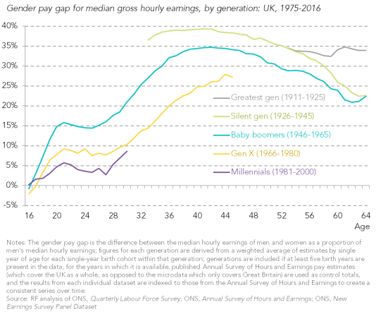 Gender pay gap by British generations