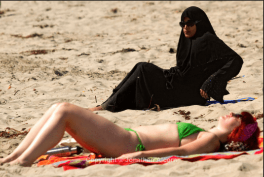 Malaysian holiday resorts are interesting because you can see women in bikinis standing next to women in those burkas that the apologists for Muslim social backwardness say liberate women even more.