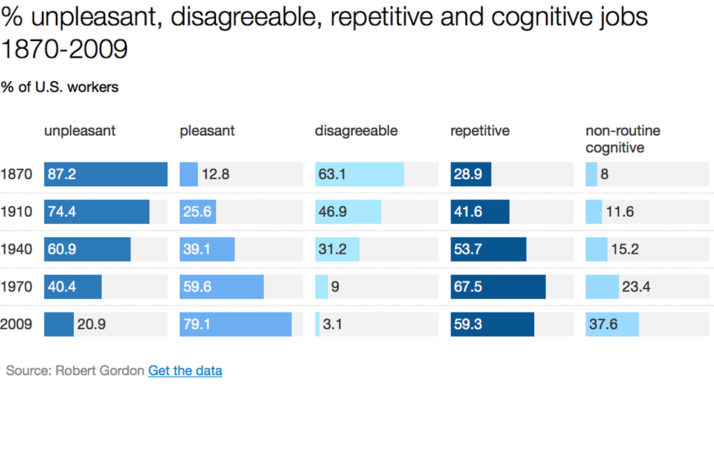 % jobs that were unpleasant or disagreeable since 1870